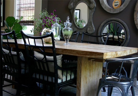 I also love mixing up the table. These slip-covered wingback chairs are a statement. I have done this for a client.